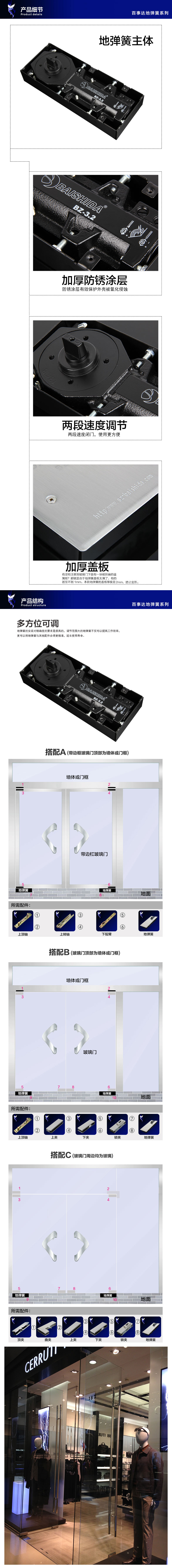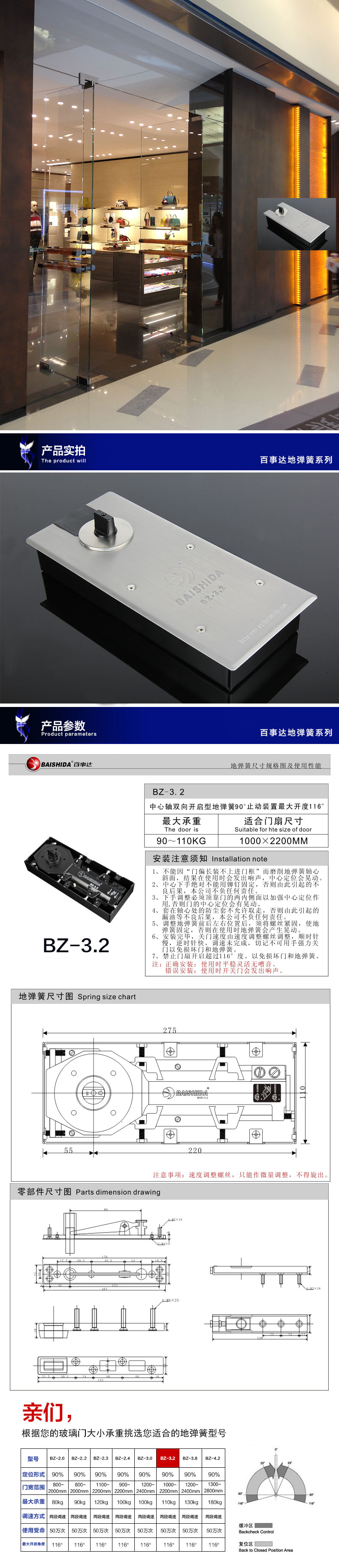 品名:适用门宽:800mm、承载:90KG 技术资料: 1、主要组合部件、全部以CR-MO合金钢经锻造成型,调质与淬火热处理,经研磨后,零件全部浸于高品质耐低温的液压油。在零下40℃至摄氏度40℃的温度时均使用正常。 2、内置减压阀,使主机在外来强压或强风等环境下,受到保护,防止损坏或漏油。 3、准确的定点性能,无论是向外部或向内部都能于0°定位,当门开启至90°时。将被准确自动定位。 4、开门力矩40NM、关门力矩26NM、在5°时不低于25NM。 5、本产品运转使用20万次后,经国家技术监督部门鉴定,品质稳定运转正常,符合QB/T2697-2005技术标准。