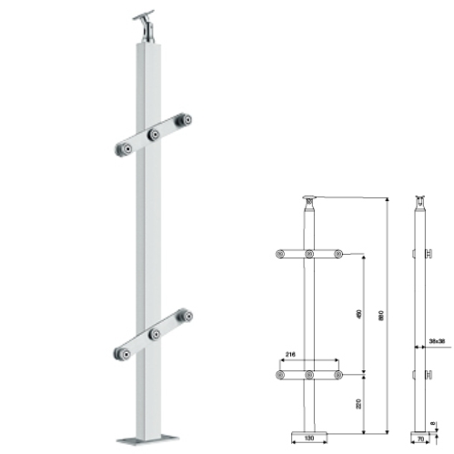 品名:护栏立柱、楼梯立柱、栏杆、扶手 概述: A.材质选用 1.采用优质奥氏体(SUS316、SUS304)不锈钢型材与脱蜡精密铸造不锈钢件,及实木: 2.工程项目可按实际需求材质定制。 B.产品规格及技术要求 1.参照国际标准规定:住宅、学校、医院、交通建筑、商店剧场电影院、办公及其它建筑室内楼梯栏杆高度大于H900mm,室外楼梯栏杆高度大于H1100mm; 2.护栏立柱分别具有:单板立柱、双板立柱、圆管立柱、方管立柱、矩形圆管立柱、平椭圆管立柱;并可组合玻璃栏板、钢索网栏板、细金属篮板等其他类型栏板; 3.可搭配各款扶手驳接件:采用流水弧线造型,表面细腻光滑,外观精致,立体感强,符合人体美学观,给人愉美的享受和无限的遐思迩想,可用于墙体与护栏连接、立柱与玻璃连接等功能; C.产品表面处理 1.物理处理方式有:镜光、亚光、接丝处理; 2.化学处理方式有:烤漆、粉末喷涂、氟氮喷涂、镀钛金等颜色。